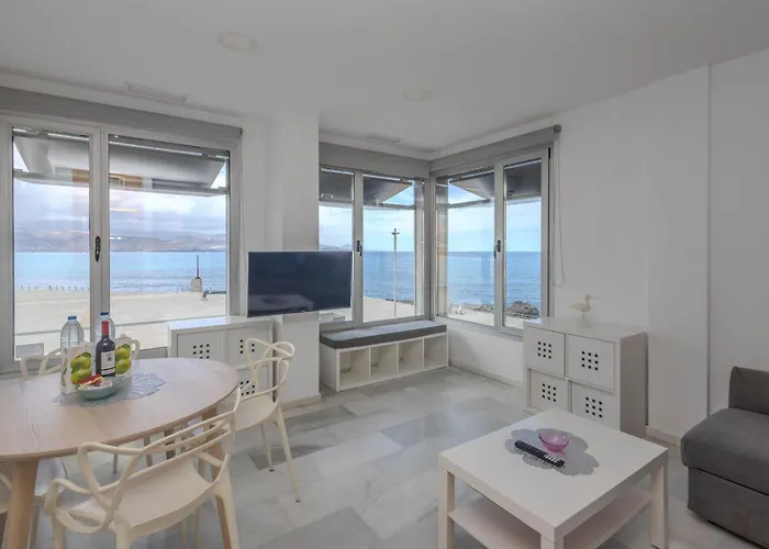 Das Bright Flat - Beachfront Las Canteras Las Palmas / Gran Canaria bietet Blick aufs Meer und liegt einen 19-minütigen Spaziergang vom Poema del Mar Aquarium entfernt.